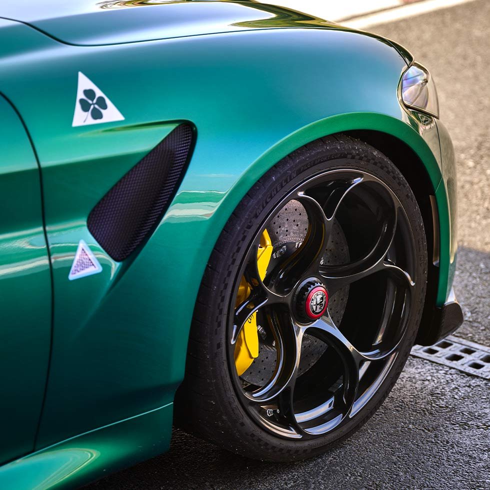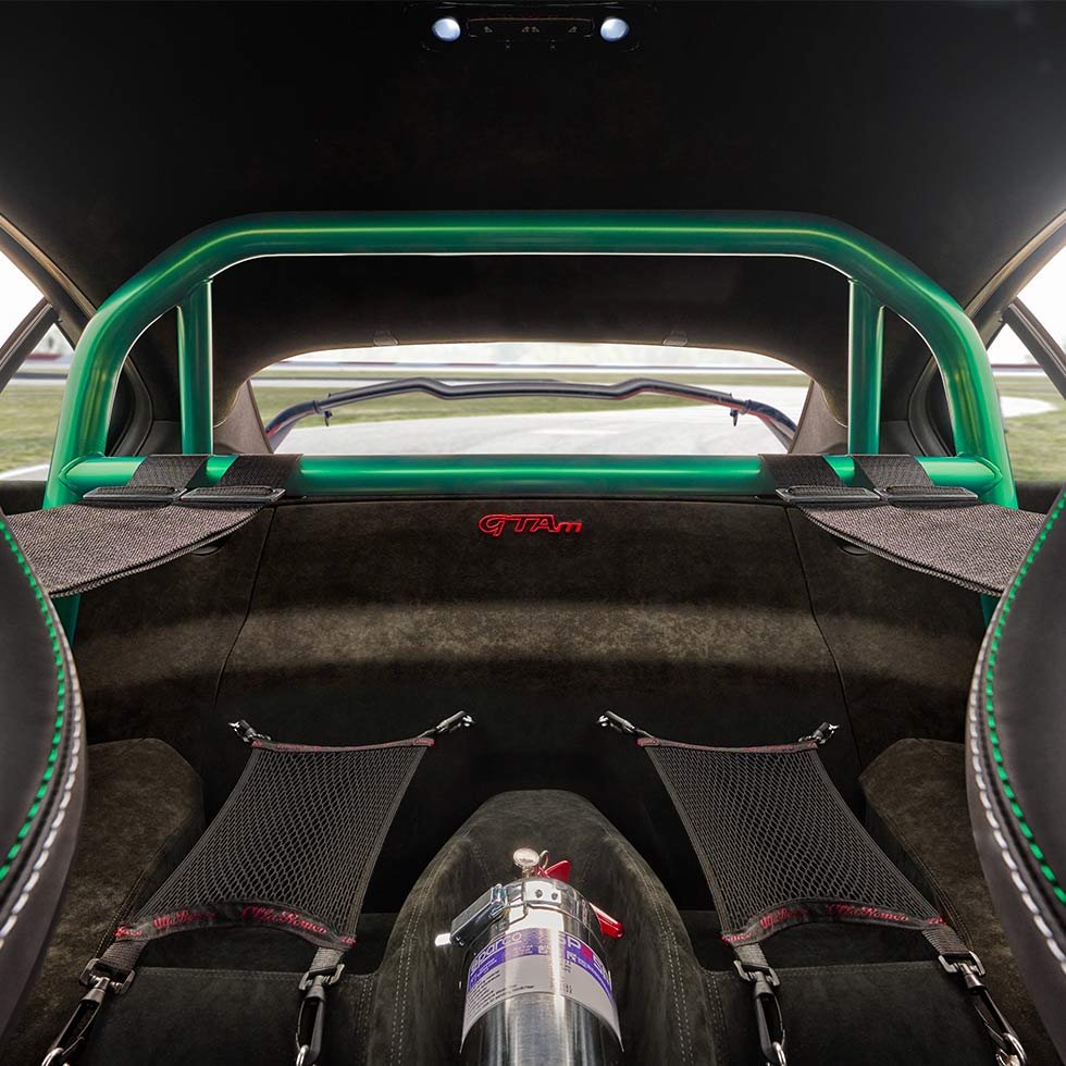 Die neue Giulia GTA ist ein strassenorientierter 5-Sitzer. Dank des Frontsplitters der Giulia Quadrifoglio, den Sauber Aerokit-Seitenschwellern und optimiertem Heckspoilers sowie den 20"-Single-Nut-Leichtmetallfelgen erreicht sie ein vollkommen neues Niveau an Sportlichkeit. Das sportliche Gefühl wird im Alcantara-Leder bezogenen Innenraum unter anderem durch die Sparco-Rennschalensitze weiter verstärkt. Die Rückbank bietet Platz für 3 Personen, die ebenso in den Genuss des Adrenalins und dem unverwechselbaren Sound der Akrapovič-Titan-Auspuffanlage mit Kohlefaser-Endrohren kommen können.