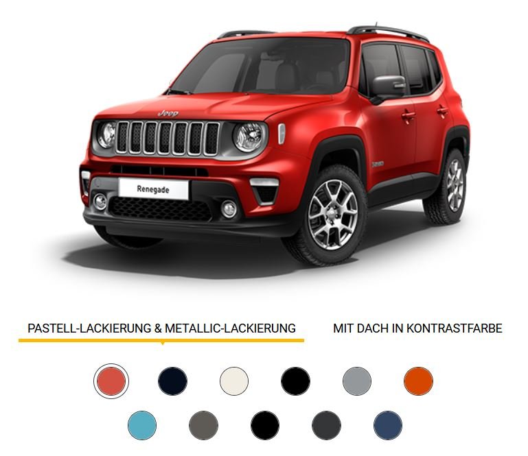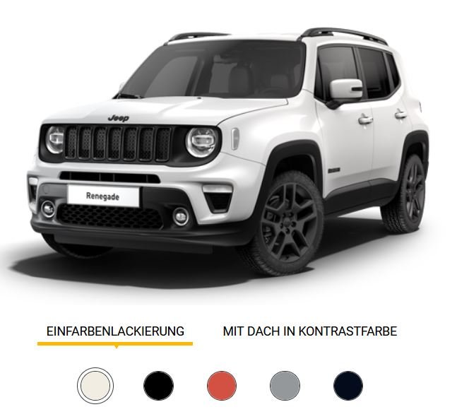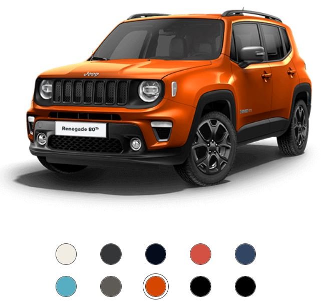 Der neue Jeep® Renegade 80ᵗʰ Anniversary lässt die Erfahrungen einer ruhmreichen Vergangenheit in einen kühnen und charakterstarken SUV einfliessen. In drei verschiedenen Motorkonfigurationen lieferbar, mit modernster Technik, authentischen Jeep® Designdetails und dem exklusiven 80ᵗʰ Anniversary Badge für noch ausgeprägteren Charakter innen und aussen.