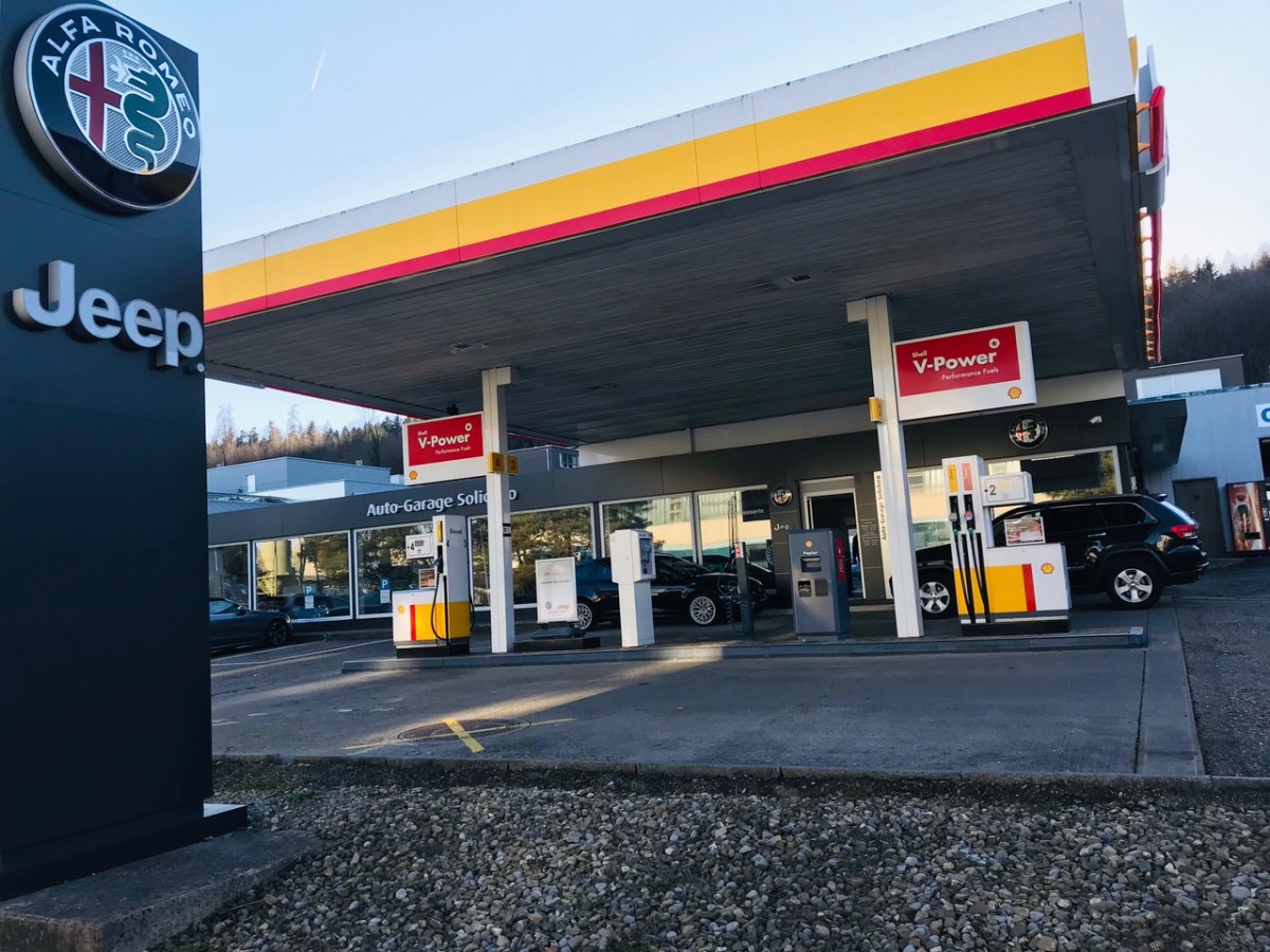 Die SHELL - Selbstbedienungstankstelle hat 24h offen.